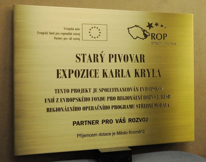 Leptání do mosazi a nerezi, firemní cedule vč. instalace v terénu. Kovové cedule pro označení staveb EU,
