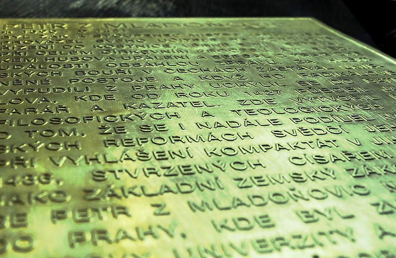 Zpracování lité bronzi, zakázková výroba litých bronzových cedulí vč. grafického zpracování dodaných motivů a technologické přípravy pro lití.